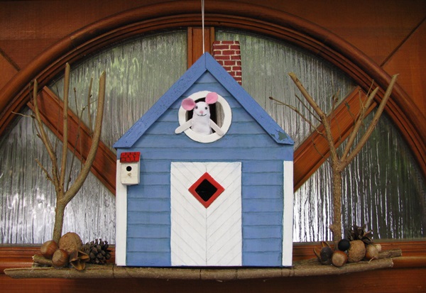 If you read my post about how the creative process works for me it will not be news that I tend to (over) analyze my pieces even after I deem them done. This is exactly what happened to my blue birdhouse. I kept looking at it as it hung on our door and felt that something was wrong. After a couple of days I realized what it was: it was lifeless.