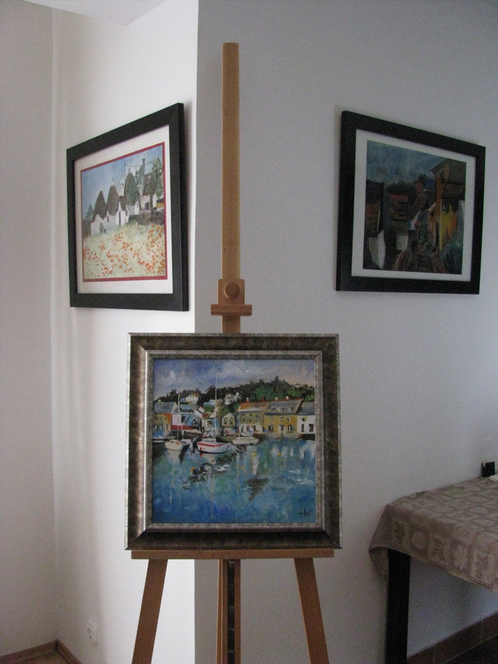 Left to right: Farmer’s shed with poppies. Cornish harbor. Szentendre. - If you have a mantelpiece or a shelf behind your couch don’t limit yourself to just family photos! Use a small photo stand or a bulkier frame to have the painting in a prominent place for all to see.