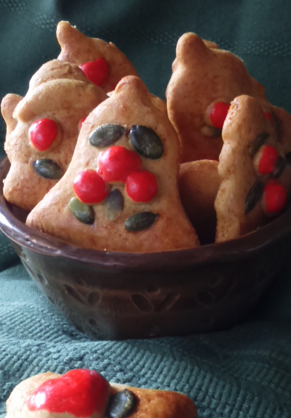 Every year I baked them and hung them on the tree as they were. This year however, I decided to experiment a bit and decorate them. I used egg yolk mixed with food coloring for the colors. Decorated with pumpkin seeds, rice. Here I collected some of these ideas in case you’d like some inspiration.