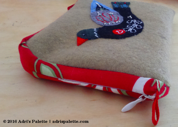 Although I had a vision of abundant embroidery and elaborate designs, once I got to this stage I changed my mind. Somehow the simplicity of the bird, the muted colors that are just splashed with a hint of red seemed appropriate and more than enough. I realized no matter how perfect the original idea seemed, how good the sketch looked on paper, in life the design suggested something else.