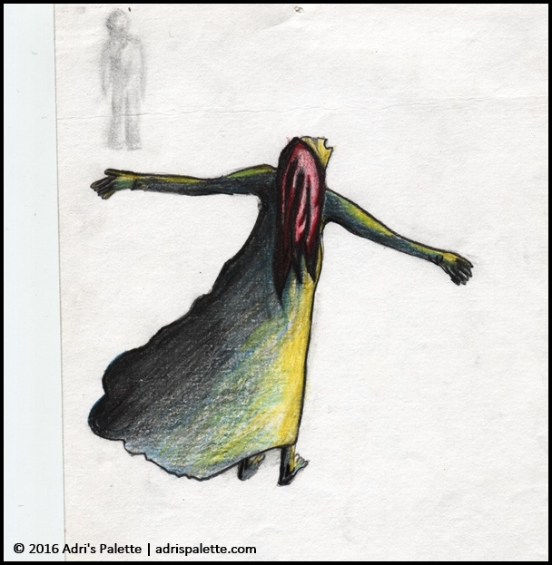 I distinctly remember this being my first drawing. I had this really intense feeling, as if I were standing at the edge of a cliff and the wind that was speeding up from below was hitting my face. This is how I managed to put it on paper.