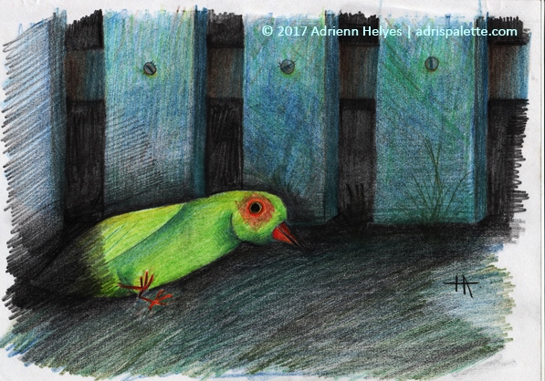 So I thought I’d try and jinx it: draw them down. Maybe if I get them on paper, if I focus on what I have seen then they’ll stay on the paper and not bother me anymore. I mean, I never tried anything like this, but maybe it will work. If not, then the next best thing would be to see Hitchcock’s The Birds. Although I hope it doesn’t come to that because it just freaks me out thinking about it.