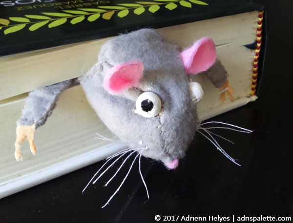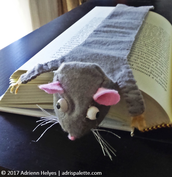 Something that did help me while working on the rat bookmark was distraction. A simple thing like putting the half finished creature in a book. For one, because it helped me picture it better as a finished product. Also, because it suddenly became alive. Stories involving it started to form themselves. Putting it between the pages of  The Tail of Two Cities (sorry about that!) definitely helped. Also, what helped was the scream that did leave my Mom’s lips when she spotted the little thing.