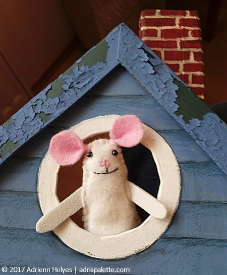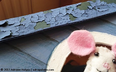 I headed to our storage, shuffled among some boxes, dove head first into others. A high-pitched shriek left my lips when I saw my little Scrummage. (See these posts for more on the beautiful house I made for him). Well, two years have gone by (what? when? where?), and the acrylic paint on the little house has chipped. And chipped badly.