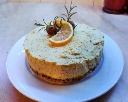 Add the zest of the lemon, lemon juice and turmeric to the mixture and mix well. Taste it to make sure it is lemony enough for your taste. Note, that the tanginess of the lemon will be more subdued once the cake firms up in the fridge, so aim for a bit more than what you’d first think. Once you are satisfied, add the chia seeds and mix again.