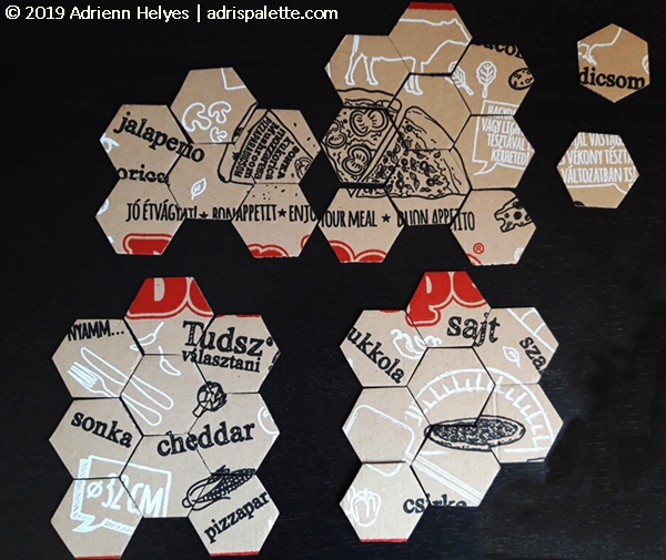 So I took me a pizza box, some scissors, two markers and set out to cut and draw and cut and draw and cut and draw….