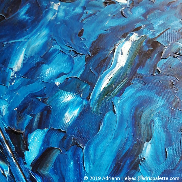 Sometimes I plan a project for weeks. I draw it, re-draw it and obsess about the composition. Other times I have a sudden inspiration and go from there. And then there are times when I get some paint on my palette, grab a palette knife, I stop thinking and let my soul vibrate to music and just paint.
