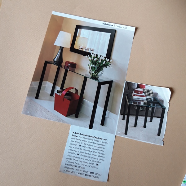 I was going through some magazines and cutouts I have put aside for inspiration and I stumbled across this picture from the Holiday 2003 Crate and Barrel catalogue. I remember so vividly how I fell head over heels in love with this console table and how I swore I’d have one as soon as I got my own place.