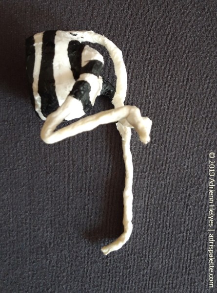 The lines of the bathing suit are crooked and I never did correct it. I also never painted the little white buttons that hold up the suspenders. I never got around to painting its face either. And even though Melchior and Felix (in Hungarian it means half of an X) are half done I really think they are quite complete. No pressure, no fuss, just lots and lots of fun and laughter… and lots of explaining to do when friends are around.