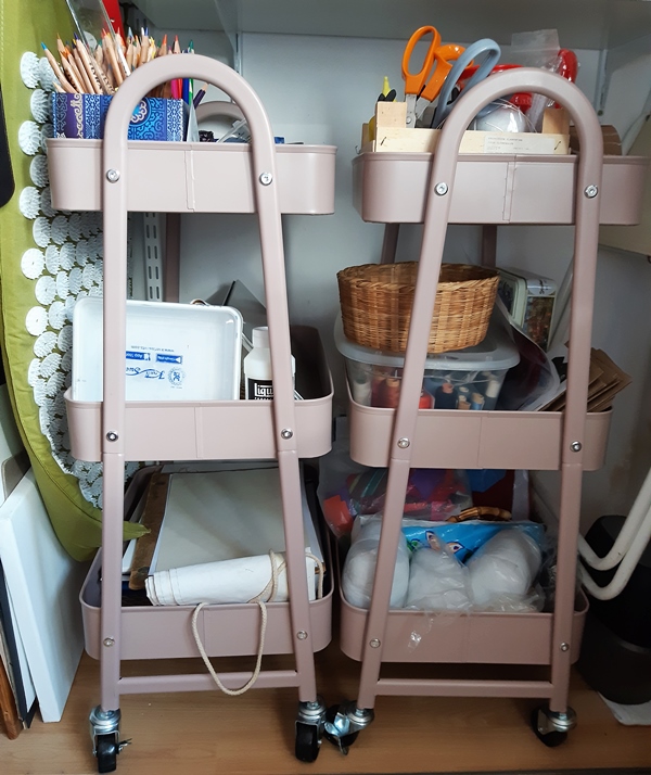 I got to the point where I thought enough is enough! I decided to change things up a bit and buy myself two trolleys: one for my crafty bits, and one for all my drawing and painting bits. I took matters (the screwdriver) into my own hands, and this is what I ended up with: